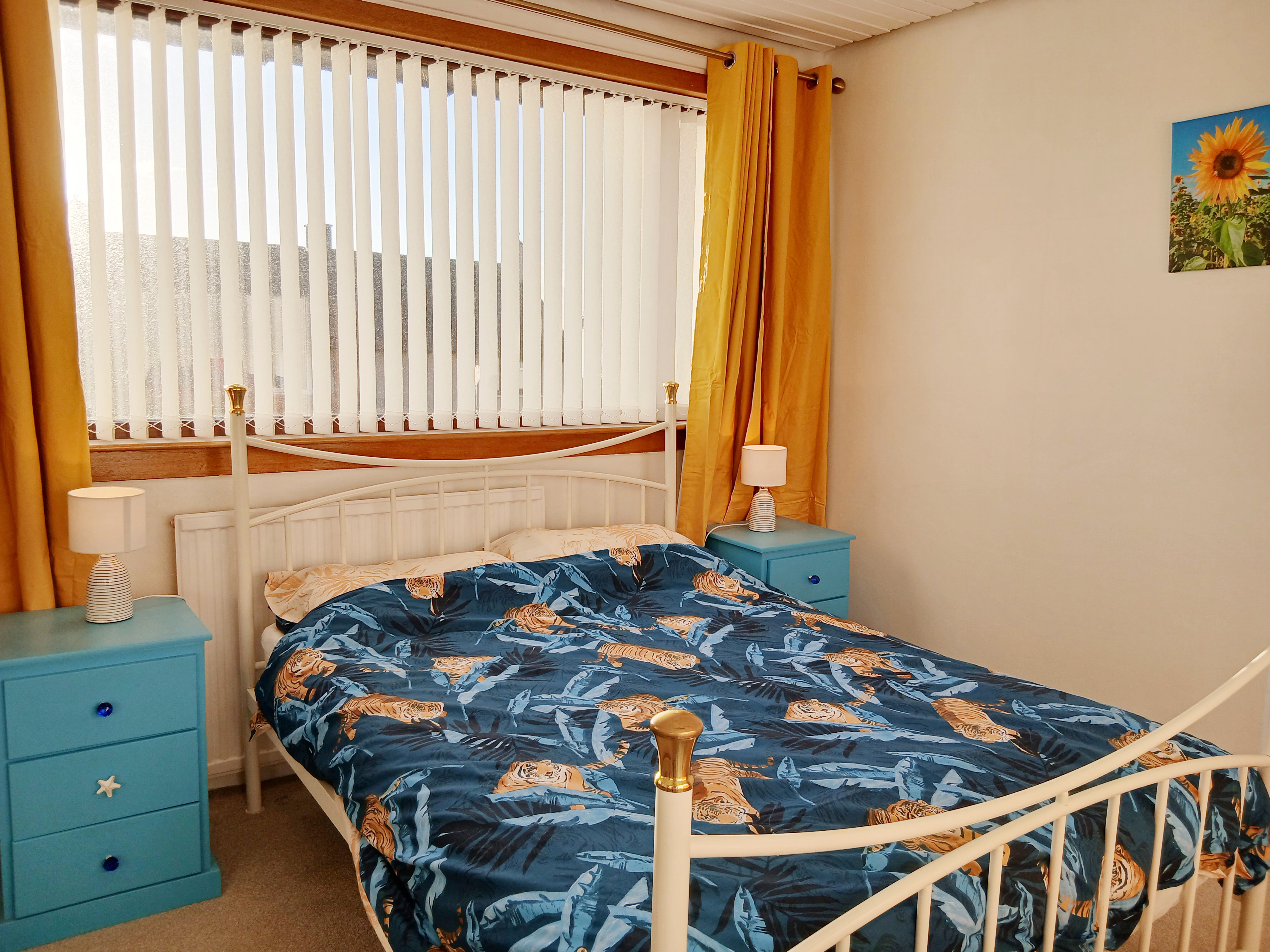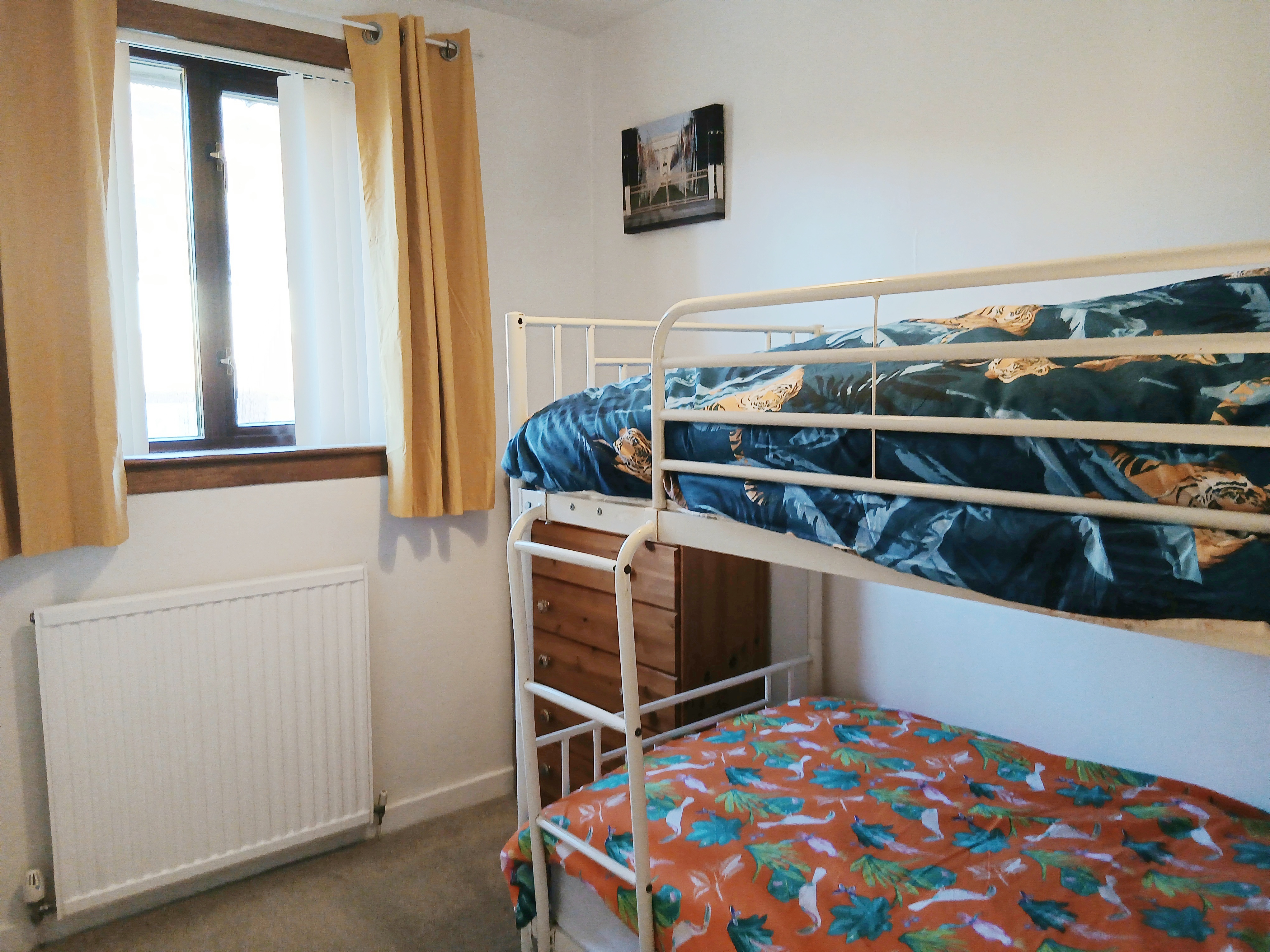 This is a 3 bedroom house, with beds for 5 people. One room contains a double room, a second contains bunk beds and the third bedroom contains a single bed. All bedrooms are on the first floor, alongside a wetroom. All rooms provide storage for clothing.